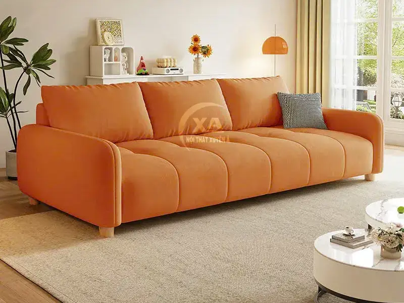 Sofa văng dài XAB145 bọc vải nhung cao cấp, màu cam ấm áp